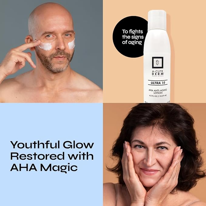 A-Cute Derm Ultra 10 AHA Anti-Aging Lotion for Exfoliation Simple and Effective for Face and Body (4 OZ)