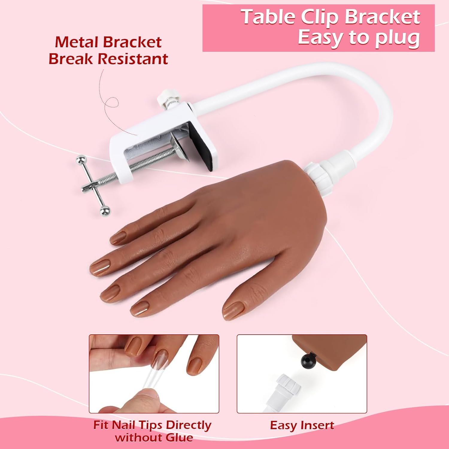 LIONVISON Practice Hand for Acrylic Nails, Silicone Nail Hand Practice, Flexible Fingers Fake Training Hand False Mannequin Hands for Nail Practice, Hand Model Kit for Nail Supplies Manicure Beginners