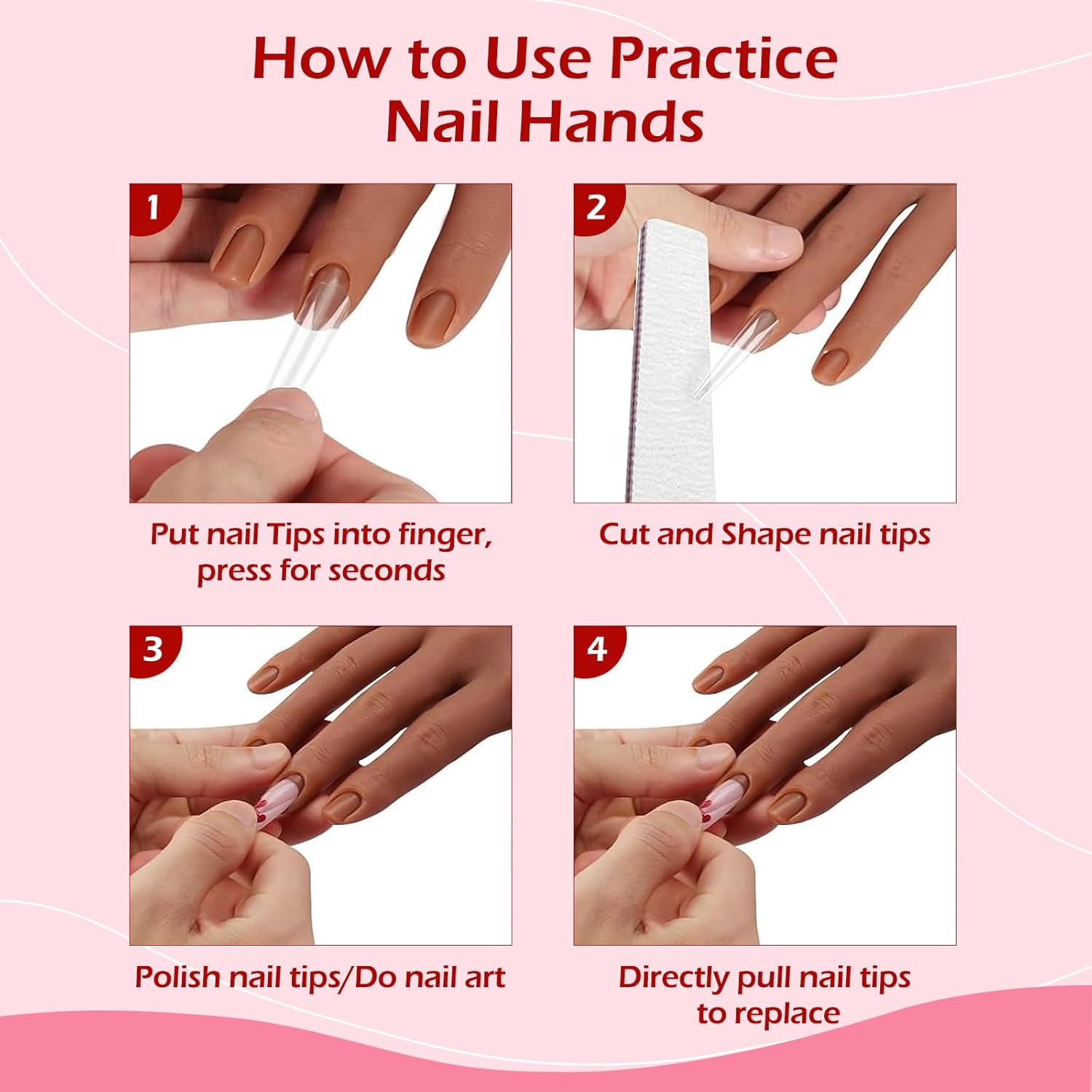 - 【Silicone Simulation Soft Touch】 This nail practice hand kit stand with bracket clamp and extra long coffin nails tips, is made of harmless liquid silicone rubber. It simulates the touch of human hands and skin lines, very soft and comfortable. It's easy to clean and reusable. The size and color of the training hand are also similar to human hands, allowing you to experience the realistic of nail art practice, especially suitable for nail art beginners to practice nail art tech.