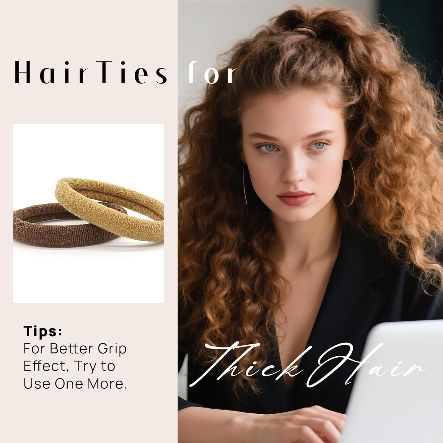 - The thick hair ties for women are stretchy and durable with high quality elastic material, which can hold a ponytail tightly without slipping and can be used for a long time with no breakage.