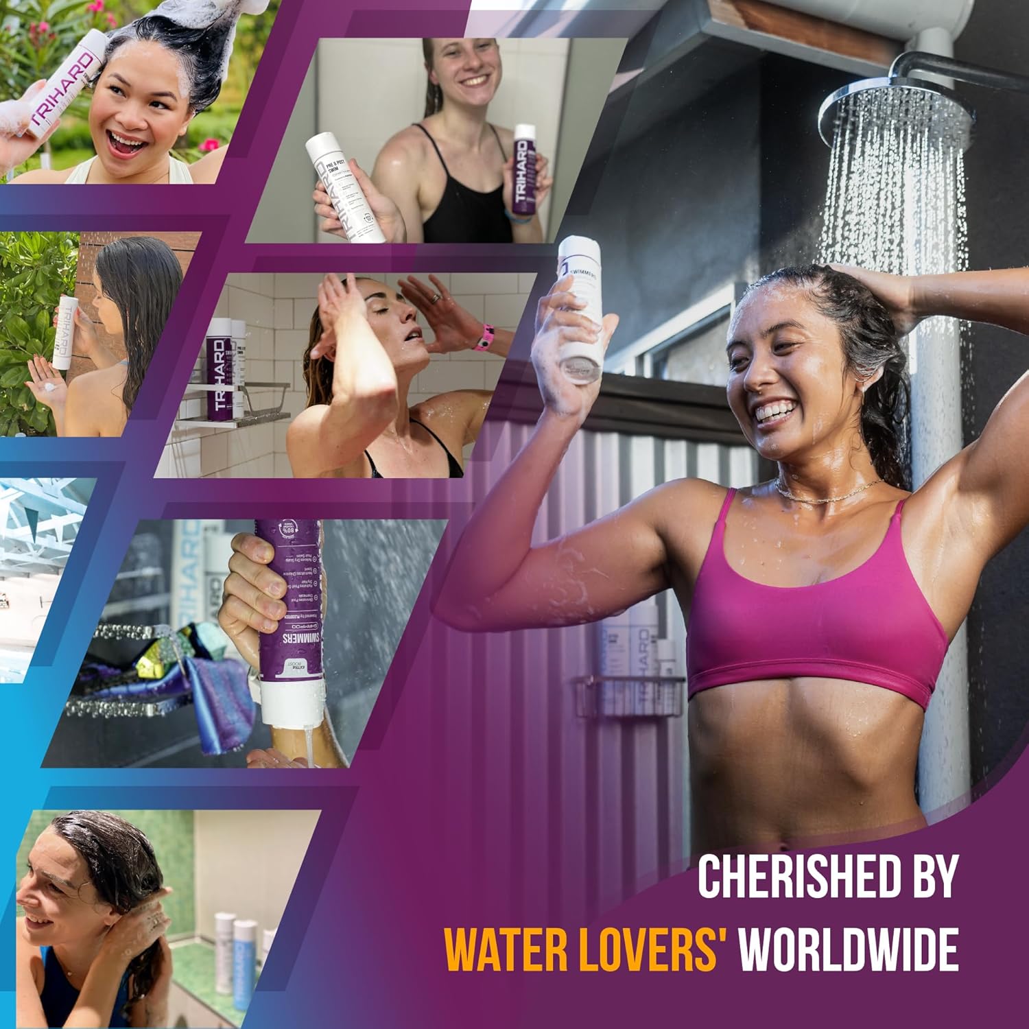 TRIHARD Chlorine Defense Gift Set for Hair & Skin Swim Protection | Pre & Post Swim Shampoo, Conditioner, Body Wash, & Lotion | Summer Essentials to Cleanse & Hydrate Sensitive Skin After Pool & Ocean