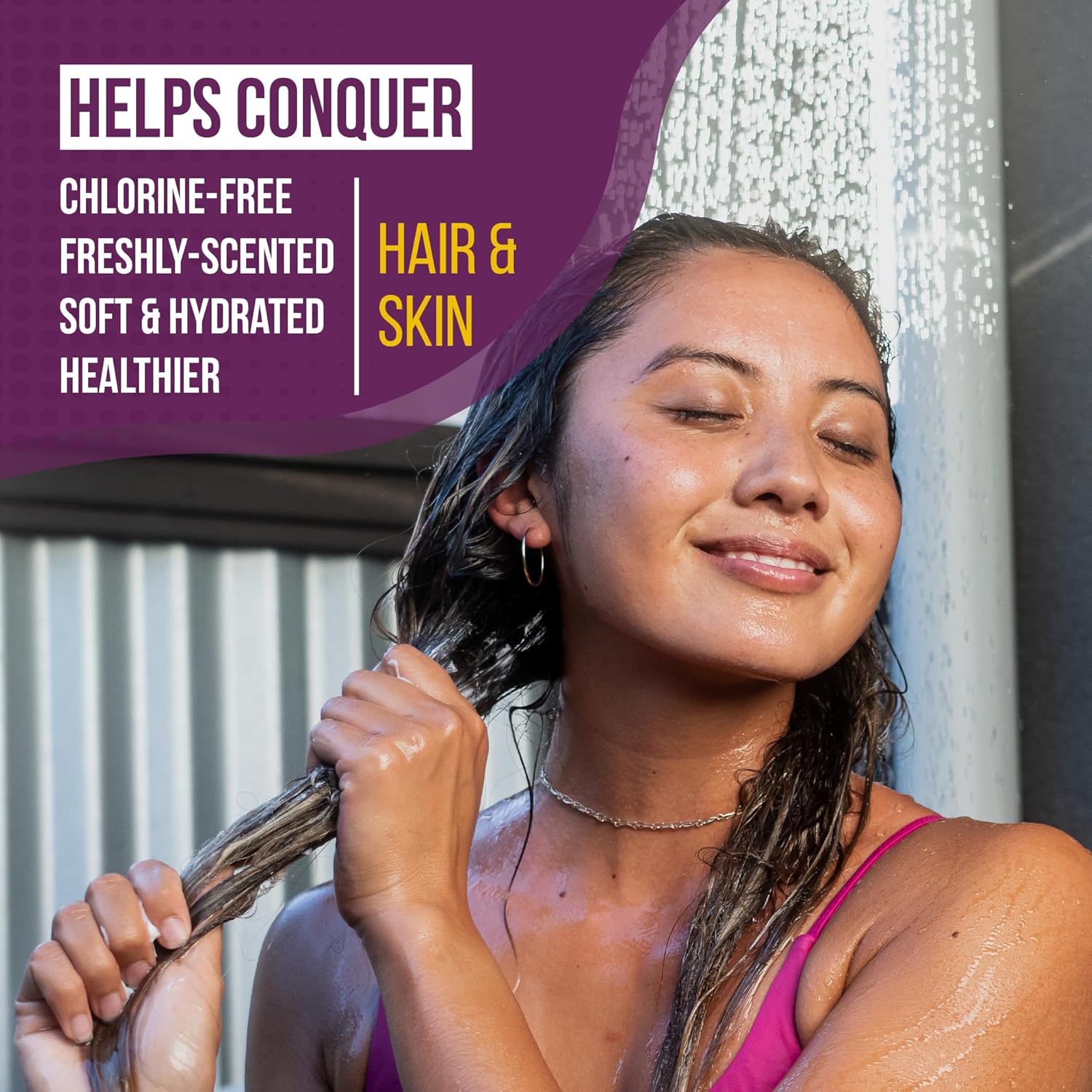 - HEAD-TO-TOE CHLORINE DEFENSE: Everything you need before and after your swim for healthy skin and hair; contains cooling body wash, moisturizing body lotion, cleansing shampoo, and hydrating conditioner