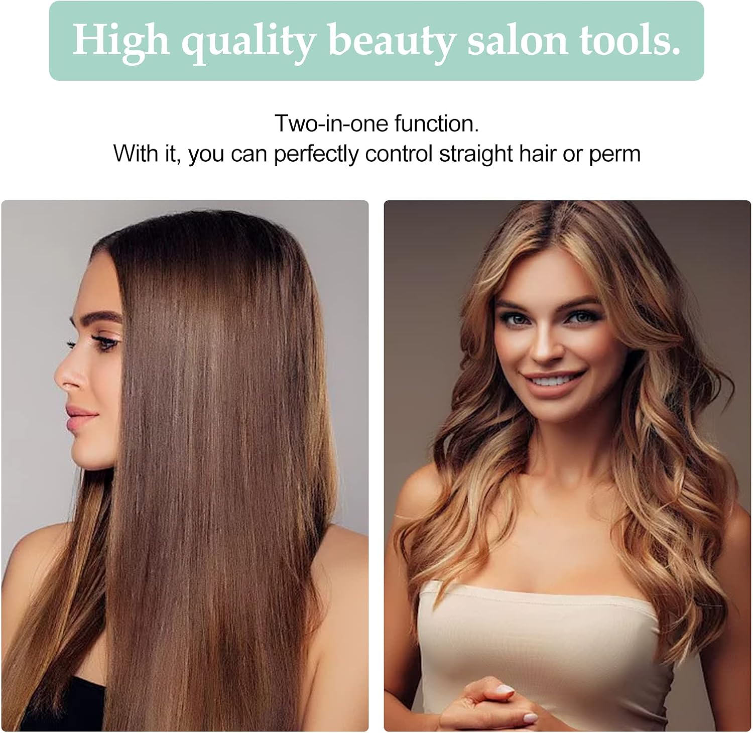 2 in 1 Mini Hair Straightener, US Plug, Ceramic Tourmaline Plate, Beauty Small Lightweight Portable Flat Iron Heating Curler for Home (Green)