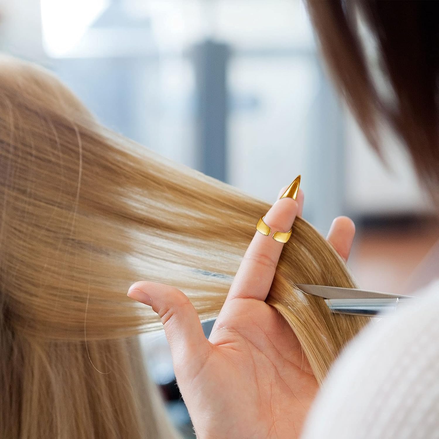 - Adjustable to well fit your finger: these nail finger metal hair parting rings are designed like an open finger ring, adjustable and easy for you to put on and fix on your thumbs, well fir your finger and convenient for you to operate, rounded pointed tips can easily control the hair parting amount, smooth surface also will not hurt your hair and scalp, considerate and convenient