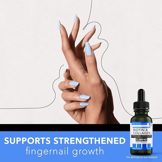 Super Natural Goods Biotin & Collagen Vitamins - Hair Loss, Gut Health, Anti-Aging, Skin Care & Nails - Made in USA, Non-GMO & Cruelty Free (4 Ounce- 15,000mcg)