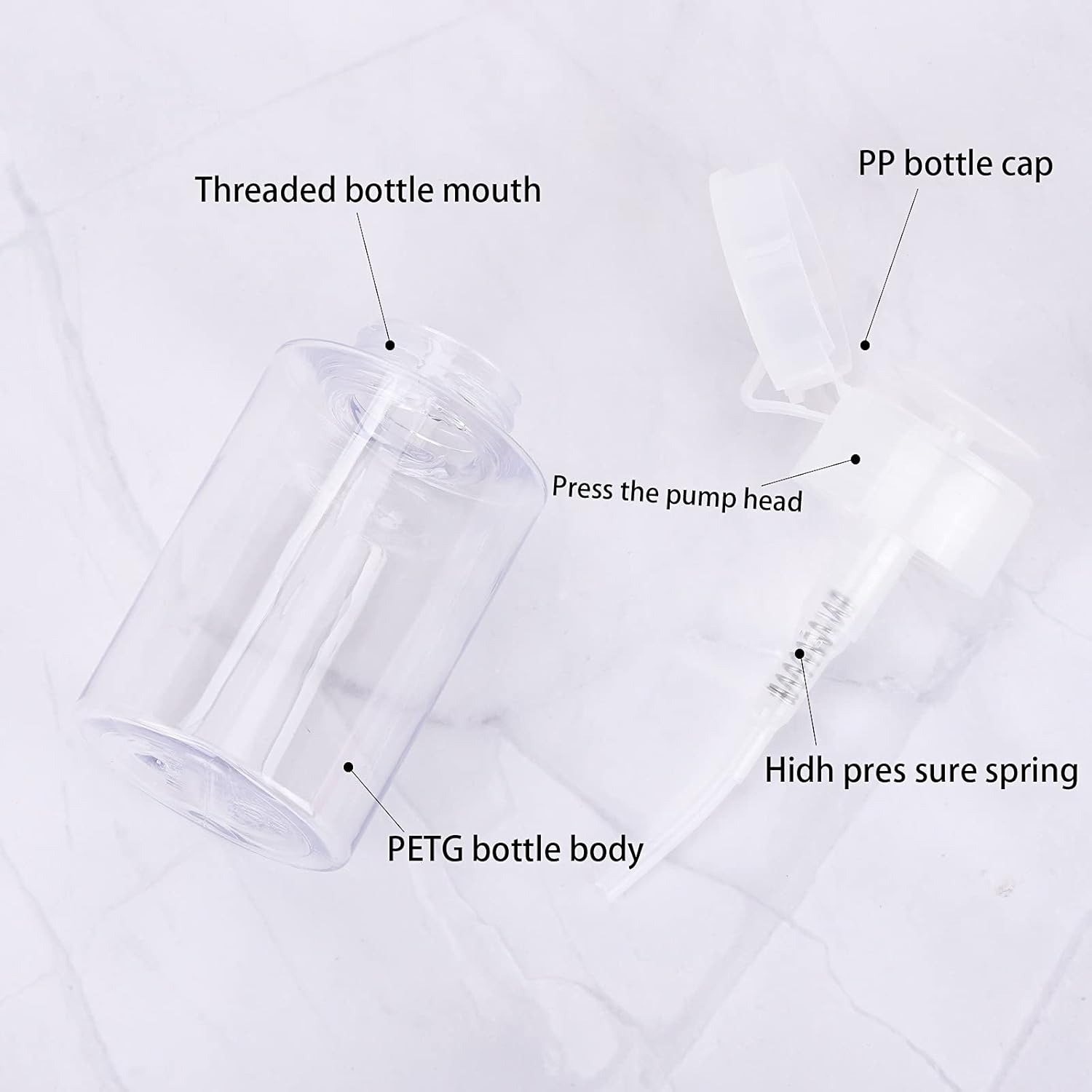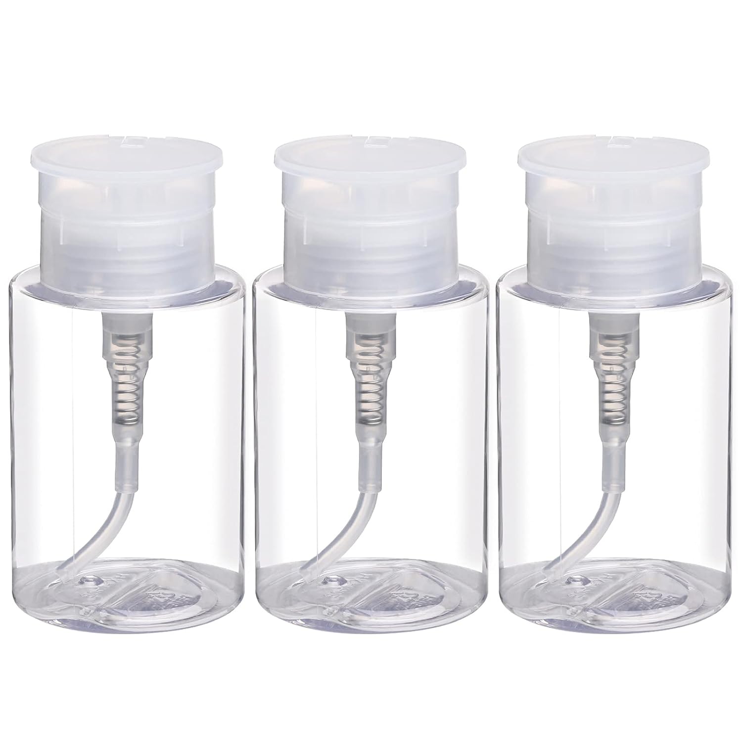 Pack of 3 Nail Polish Remover Pump Empty Dispenser Bottle for Alcohol, Acetone, Nail Polish and Makeup Remover, 150ml(5.10z), Clear Top Cap