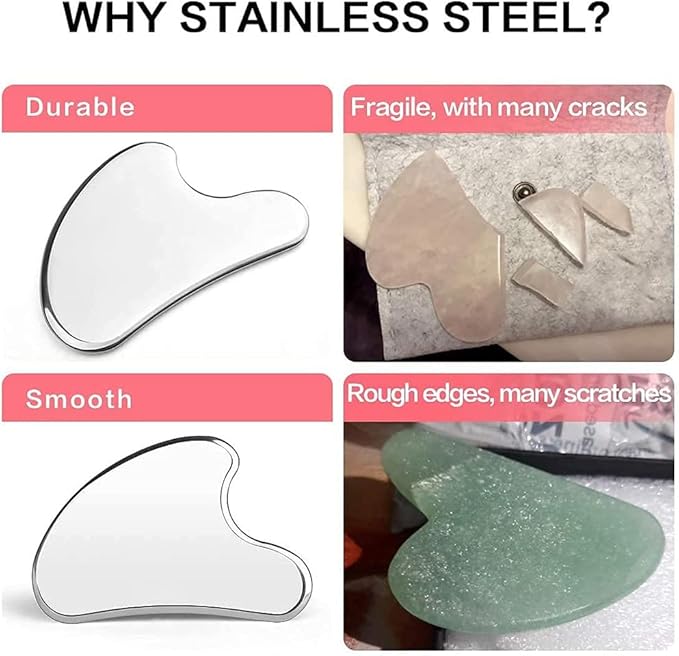 - Metal Gua Sha Tool - Versatile sculpting. Our metal gua sha tool lifts your skin, promotes blood circulation, softens fine lines, relieves muscle tension, and helps shape your jawline.