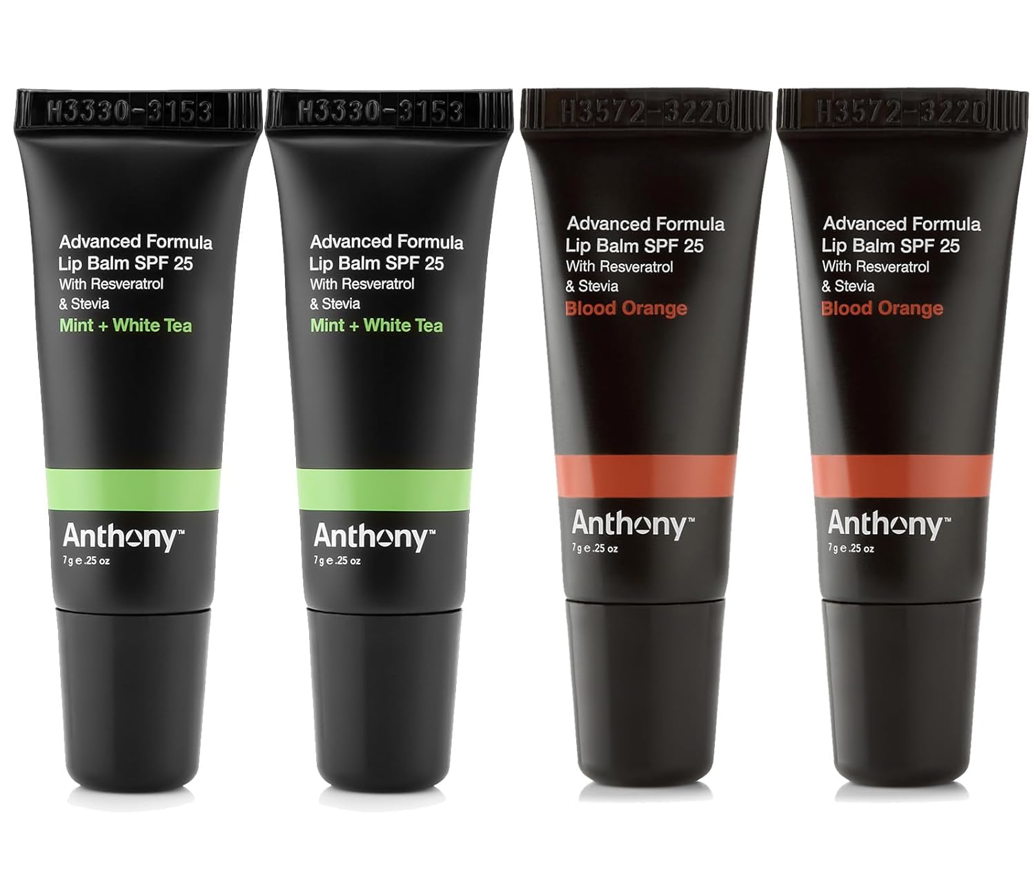 Anthony 25 SPF Lip Balm With Sunscreen - Contains Green Tea Extract, Shea Butter & Vitamin E - Moisturizing Repair Care Treatment for Chapped & Dry Lips 4-Pack
