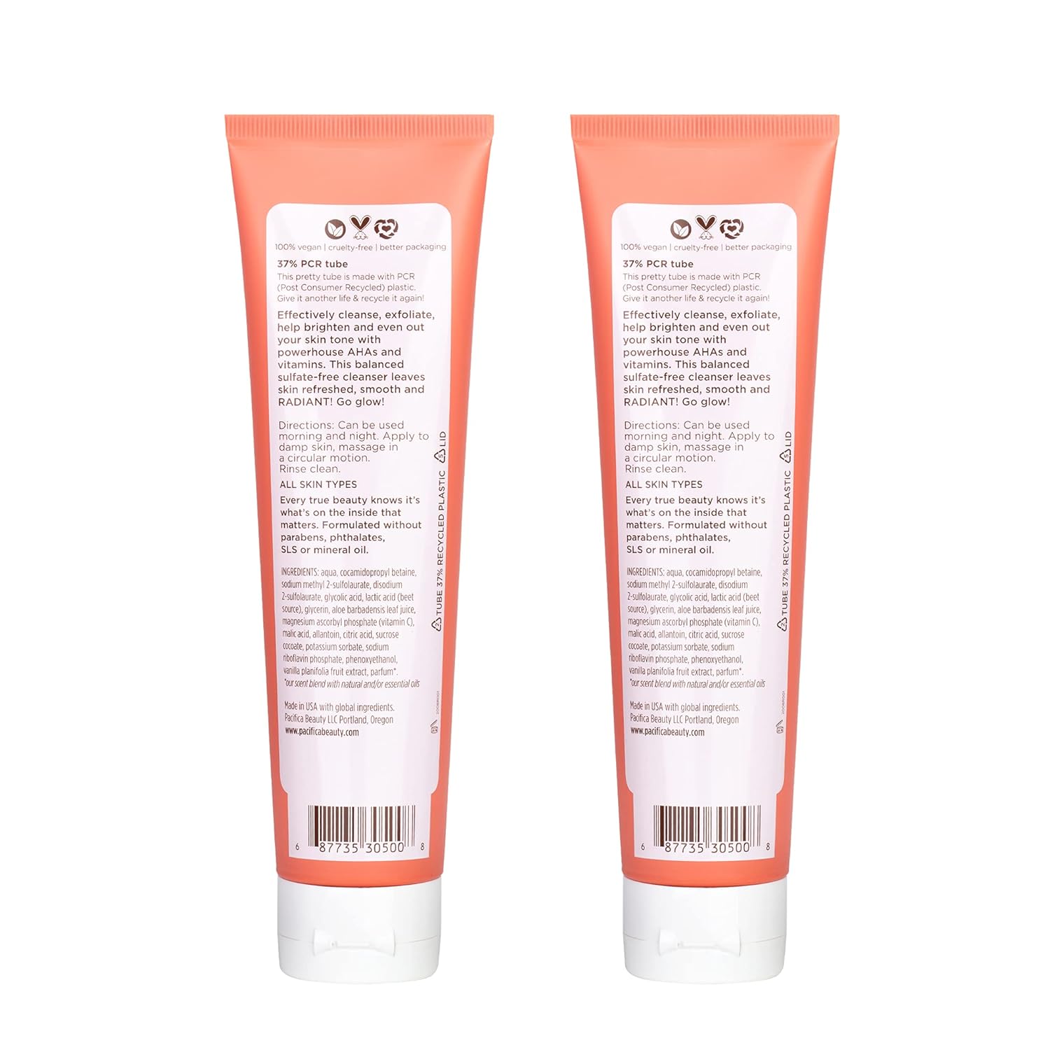 Pacifica Beauty Glow Baby Brightening Face Wash Set, Skincare, Face Cleanser, Exfoliator, AHA, Even Skin Tone, VItamin C, Vanilla, Sulfate and Paraben Free, Vegan, 5 fl oz Each (Set of 2)
