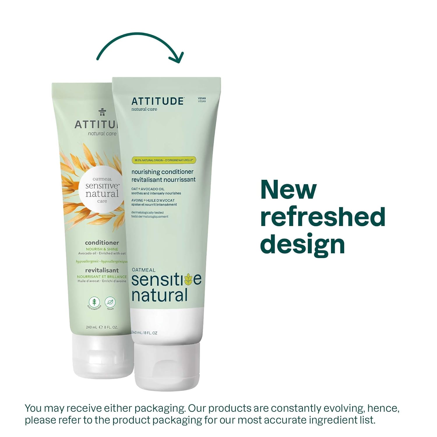 ATTITUDE Hair Conditioner for Sensitive Dry Scalp, Dry and Damaged Hair, Soothing Oat, Naturally Derived Ingredients, Dermatologically Tested, Vegan Detangler, Nourishing, 8 Fl Oz (Pack of 6)