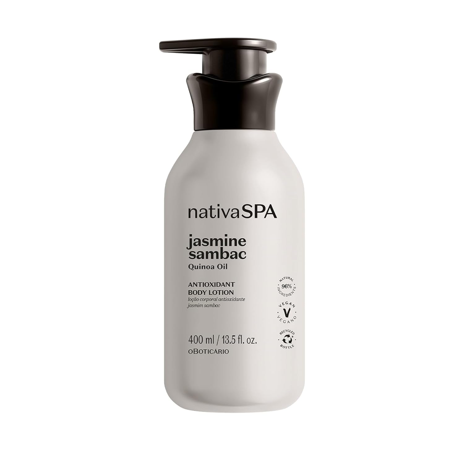 Nativa SPA by O Boticario Jasmin Sambac Anti-Stress Body Lotion, Fragranced Moisturizer Enriched with Purified Quinoa Drops to Boost Hydration, 13.5 Ounce (400ml)