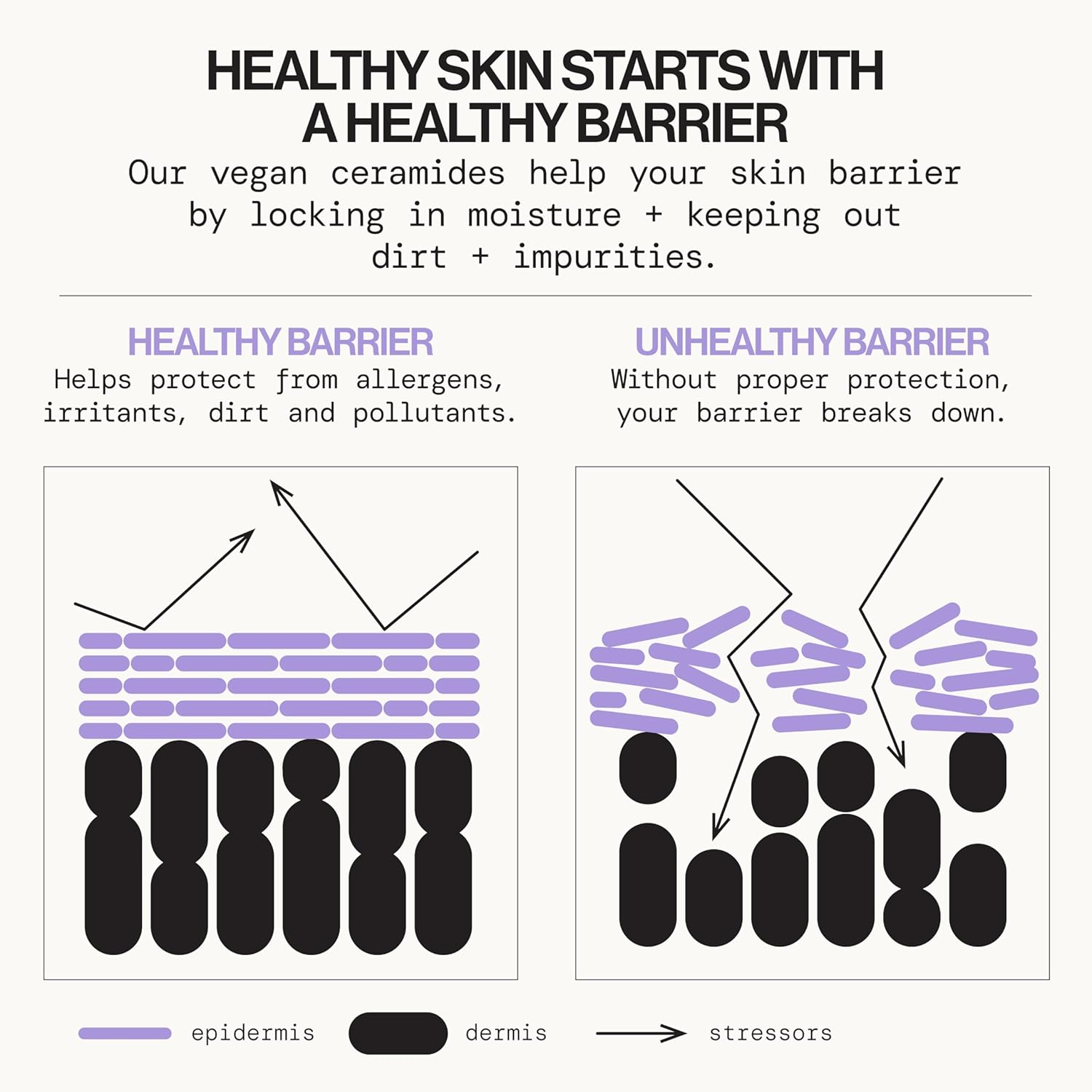 - Barrier Repair and Moisturizer: Our ceramide-rich lotion helps restore and strengthen your skin's natural barrier, locking in moisture and protecting against environmental stressors. This face moisturizer for oily skin and dry skin alike promotes a healthy, glowing complexion with our skincare moisturizer.