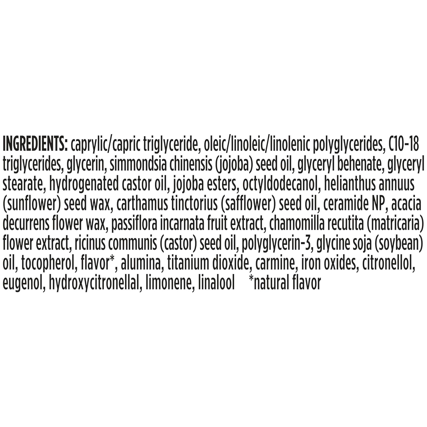 - INFUSED AND ENRICHED: Passion fruit and chamomile flavor is a luscious treat for the senses, while passion fruit extract, vitamin E and ceramides help maintain your lip’s natural moisture barrier