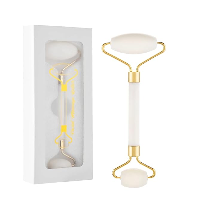 Face Roller Jade Roller for Face, Eye & Neck Skin Care, 100% Genuine Jade Stone Facial Roller Massager, Eye Roller for Puffy Eyes, Facial Rollers for Aging Skin, Facial Self Care for Women(White)