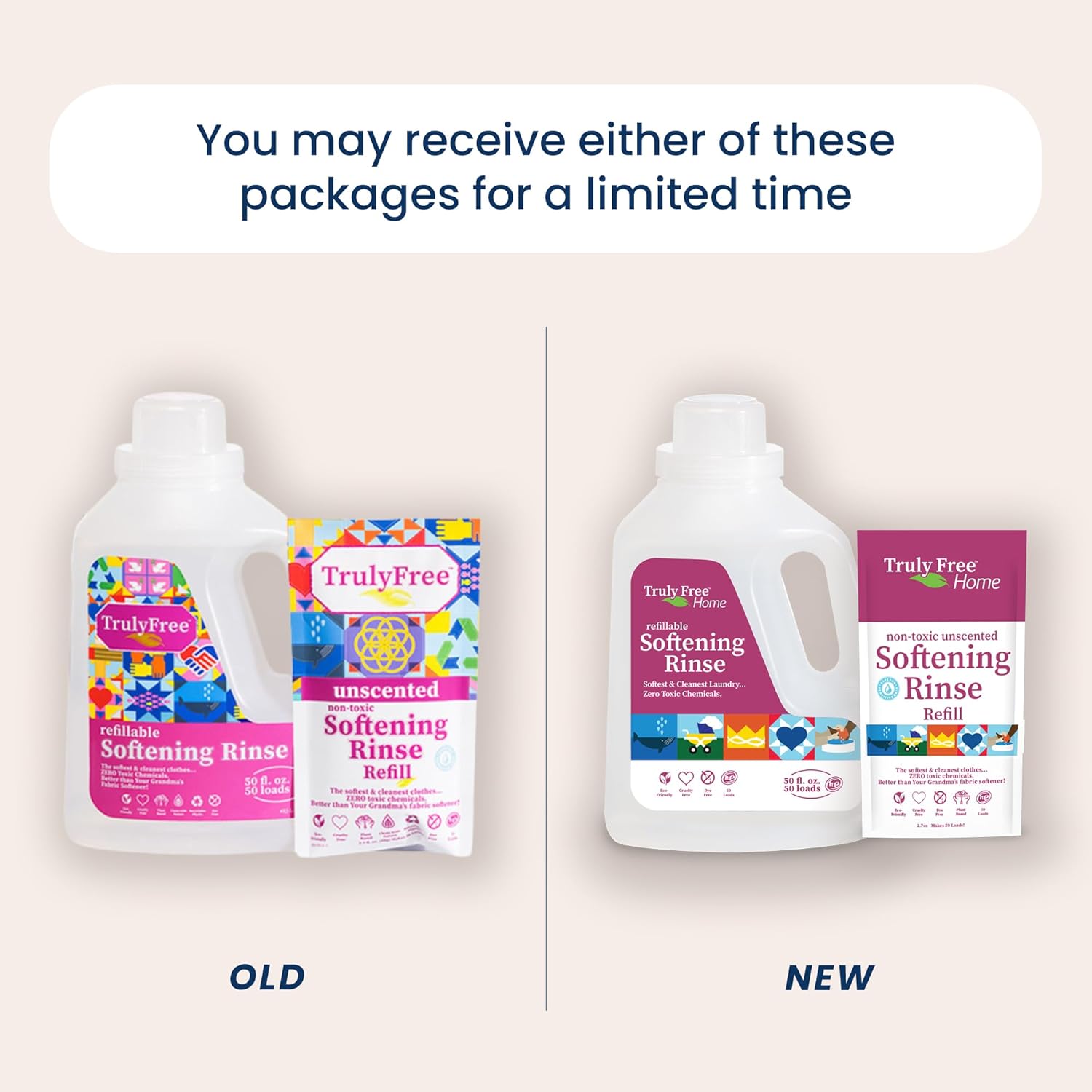 Truly Free Fabric Softening Conditioner for Clothes| Safe for Babies & Kids with Sensitive Skin | Plant-Based | Include 1 Refillable 50oz Bottle with Measuring Cap| Unscented Rinse(50 Loads)