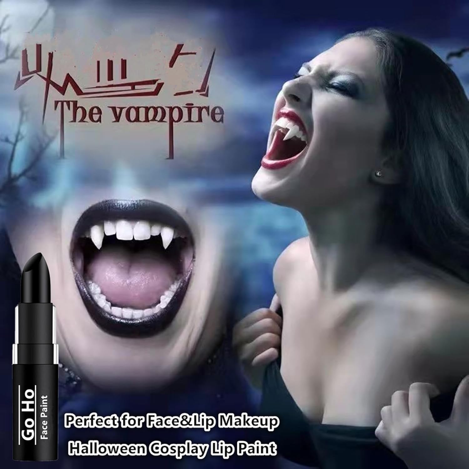 - 【Clown,Vampire Zombie SFX Black Face Makeup,Face/Lip Paint】 ---Face & Lip smacking cream blend stick for Vampire and Monster SFX Makeup & Dress Up.A good choice for professional clowns.As a black lipstick is also perfect,safe ingredients.One Stick Does It All This Halloween! Safe, skin-friendly formula works perfectly for face painting AND lips. Transform into your favorite monster, vampire, or fairy in seconds! Super easy to use!