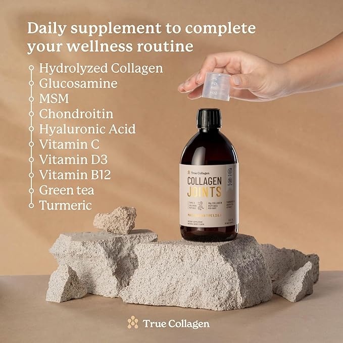 True Collagen Joints | 10,000 mg Hydrolyzed Collagen Liquid Supplement - 500 ml, 20 Day Supply | Glucosamine, MSM and Chondroitin to Support Joints | Fat-Free, Sugar-Free, 100% Natural Berry Flavor