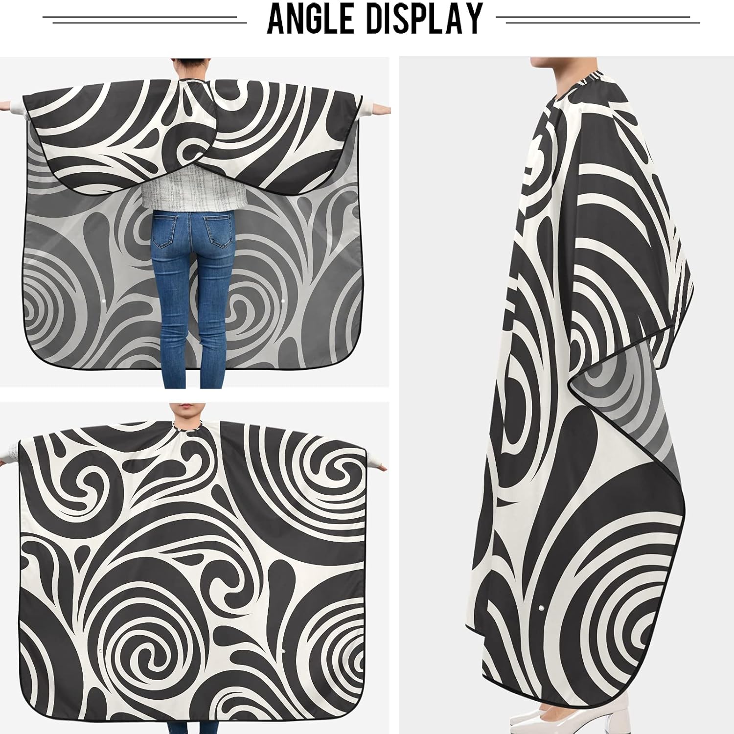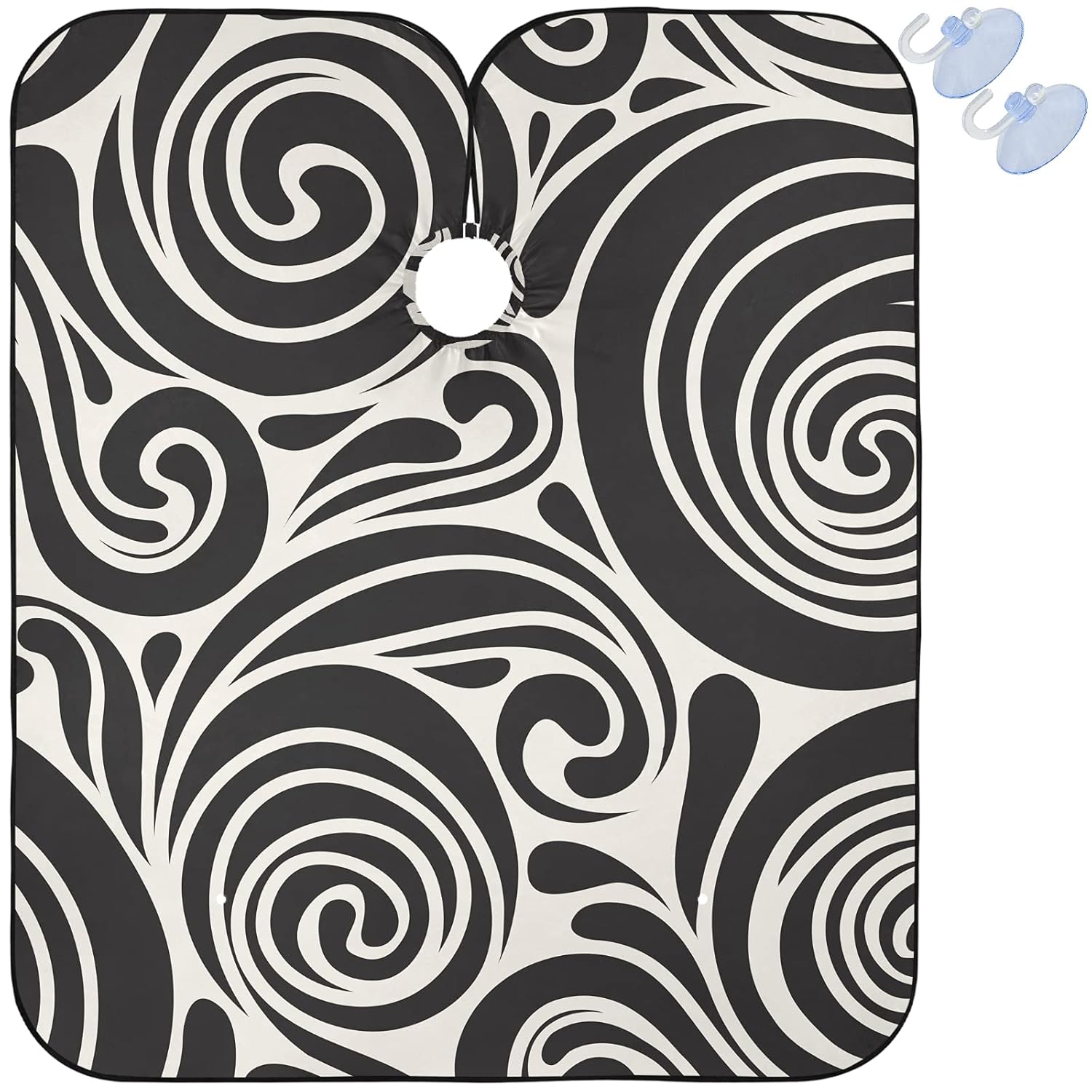 visesunny Barber Cape Black Whirlpool Pattern Polyester Hair Cutting Salon Cape Apron Anti-Static Haircut Water-Resistant Shaving Cloth Beard Shaving Bib Hairdressing Cape