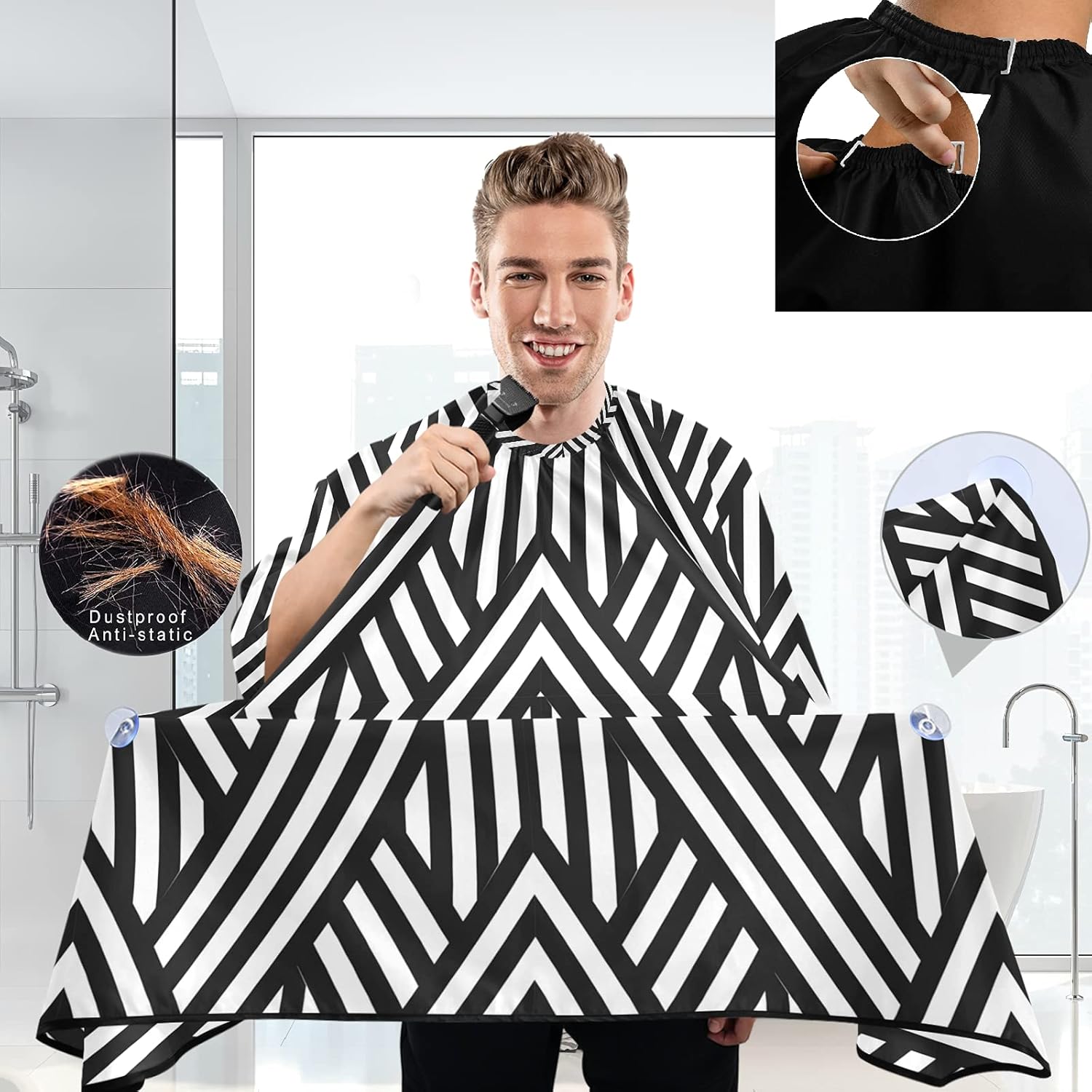 visesunny Barber Cape Black Stripe Polyester Hair Cutting Salon Cape Apron Anti-Static Haircut Water-Resistant Shaving Cloth Beard Shaving Bib Hairdressing Cape