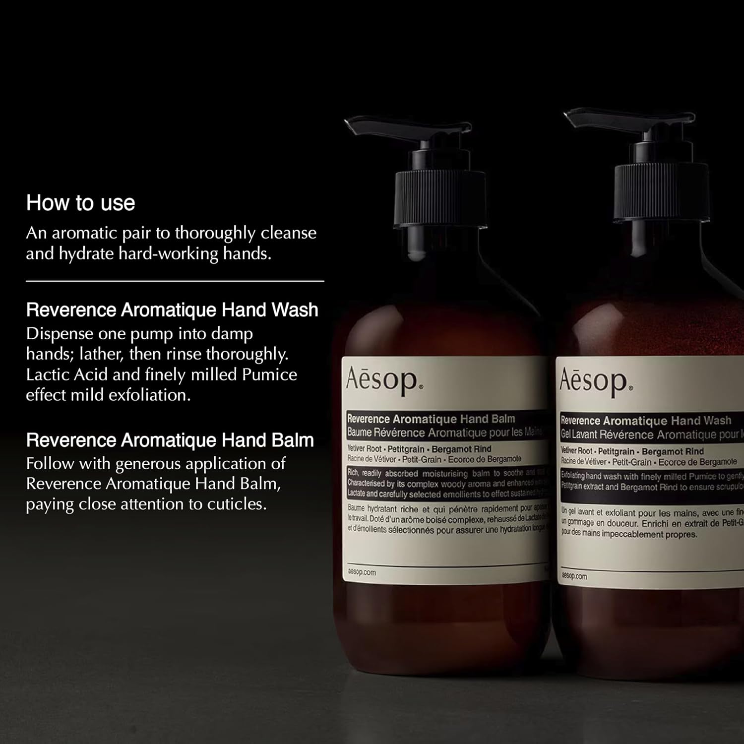 Aesop Reverence Hand Wash & Balm Set | Citrus, Woody, Herbaceous Duo to Cleanse and Hydrate the Hands | Vetiver Root, Petitgrain, Bergamot Rind | 16.9 oz / 500 mL
