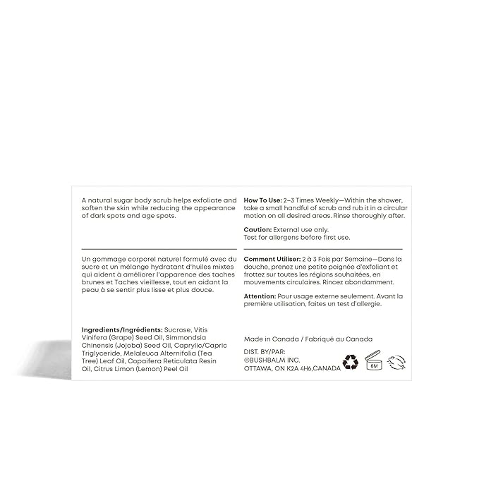 - Best to Use: Safe to use on all skin types and everywhere on the body, even in the most intimate areas. For best results, use this scrub 2-3 times a week in the shower. Use this before shaving, getting a wax, or having sugar hair removal. We recommend using one of Bushbalm’s Body Oils, (sold separately), when you step out of the shower.