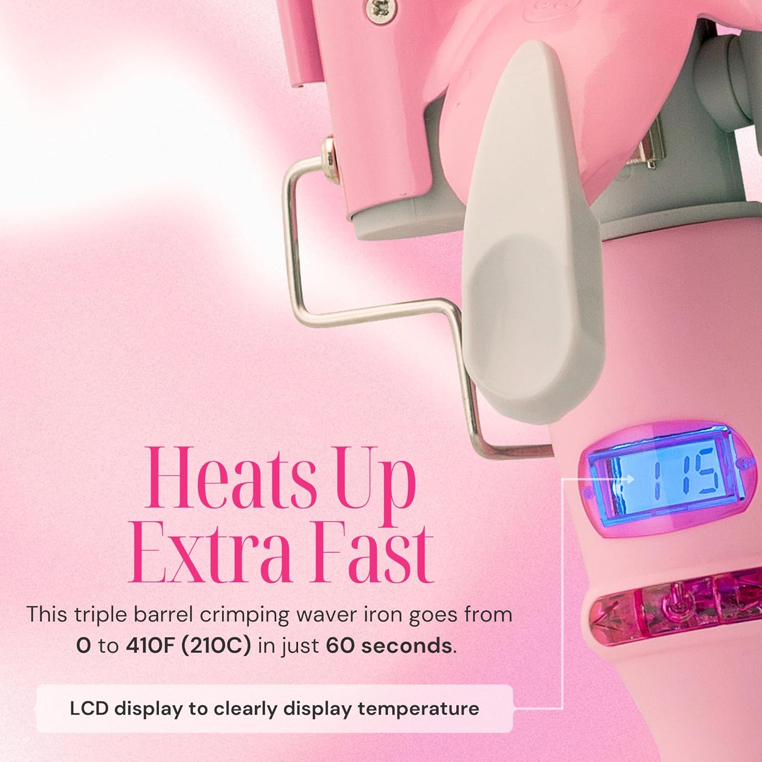 - HEATS UP EXTRA FAST: This triple barrel curling iron goes from 0 to 410F (210C) in just 60 seconds. Easily adjust the temperature to suit your hair type and cut your dressing up time significantly with our conveniently fast-heating beach hair curling iron.