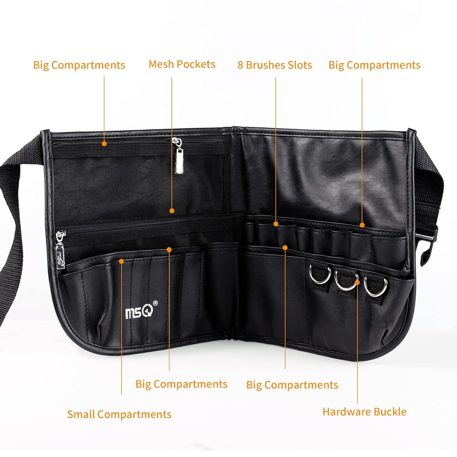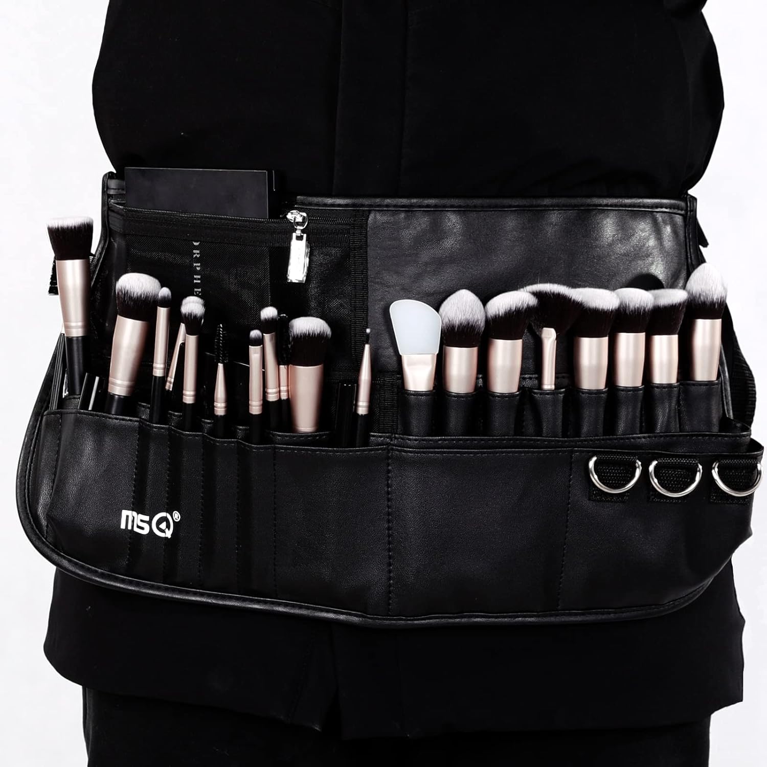 MSQ Makeup Brush Bag with Belt Cosmetic Brush Pouch Holder Organizer Multi Pocket Apron Pack with Adjustable Artist Belt Strap Large Capacity Great for Artist/Fashion Stylist (Brush Not Included)