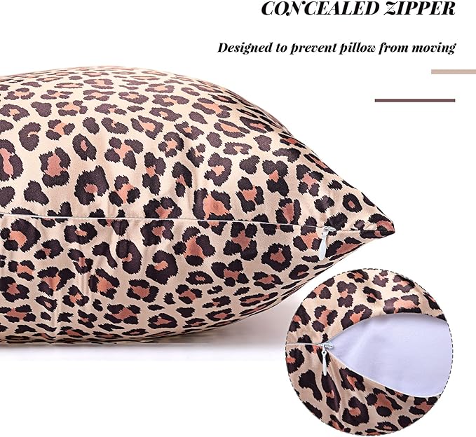 2 Pack Satin Pillowcase with Latent Zipper, Adjustable Satin Eye Mask for Sleeping and Satin Volume Scrunchie for Hair and Skin, Standard Size (Brown,Leopard Style)