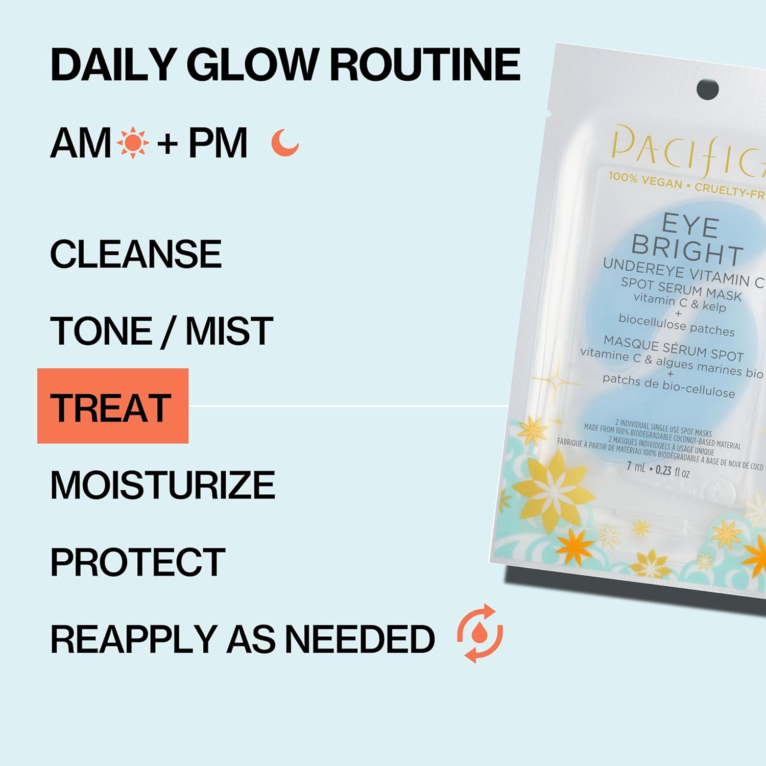 Pacifica Undereye Spot Serum Mask – Bright Eye Vitamin C Mask for Dark Circles & Hydration, Brightening Under Eye Treatment, Vegan & Cruelty-Free, 4 Pack