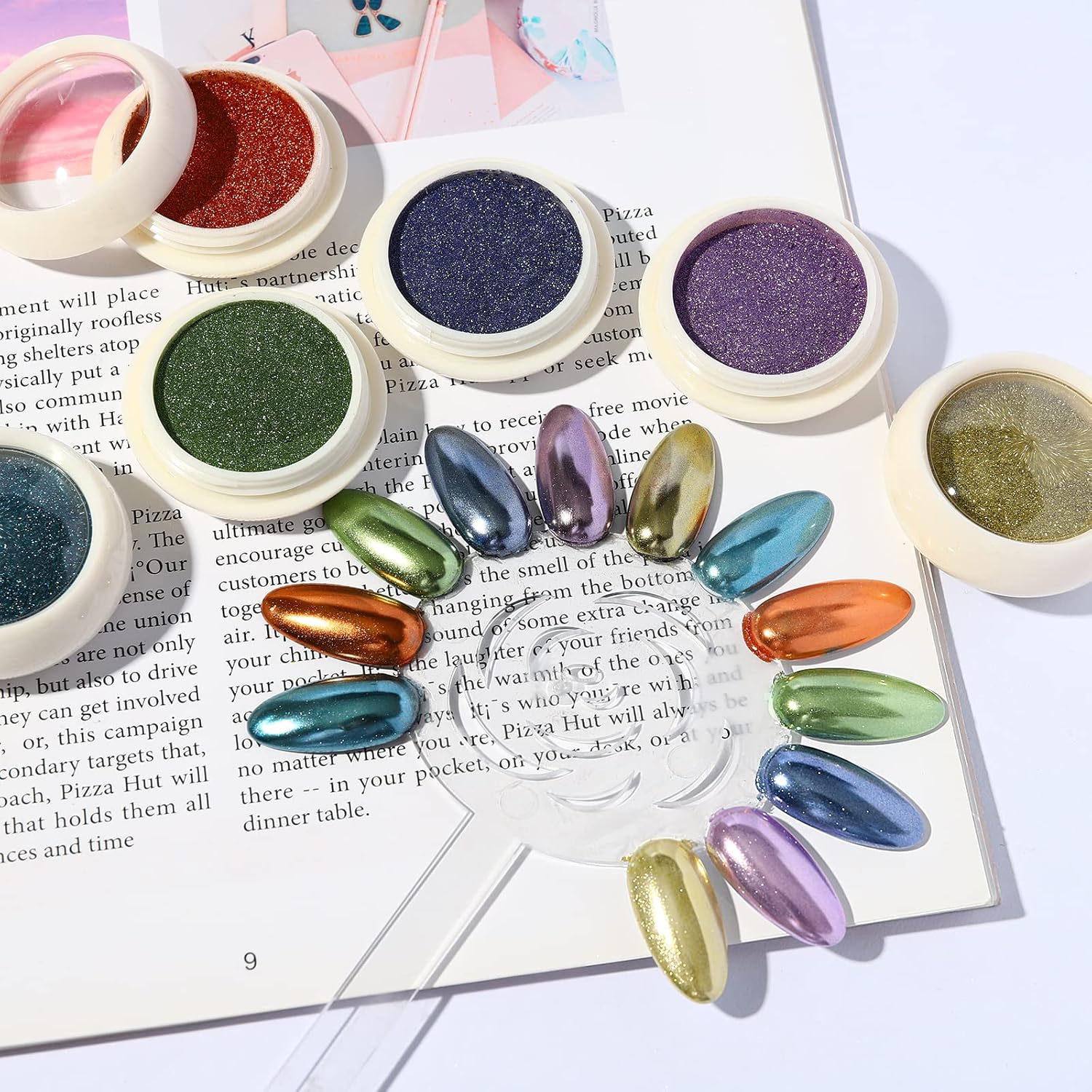 - ๐Wide Application: The chameleon chrome nail powder is applied on UV gel nails, acrylic nails, natural nails, etc, also a helpful DIY tool for decorating homes, cell phone cases, glasses, body art, etc.