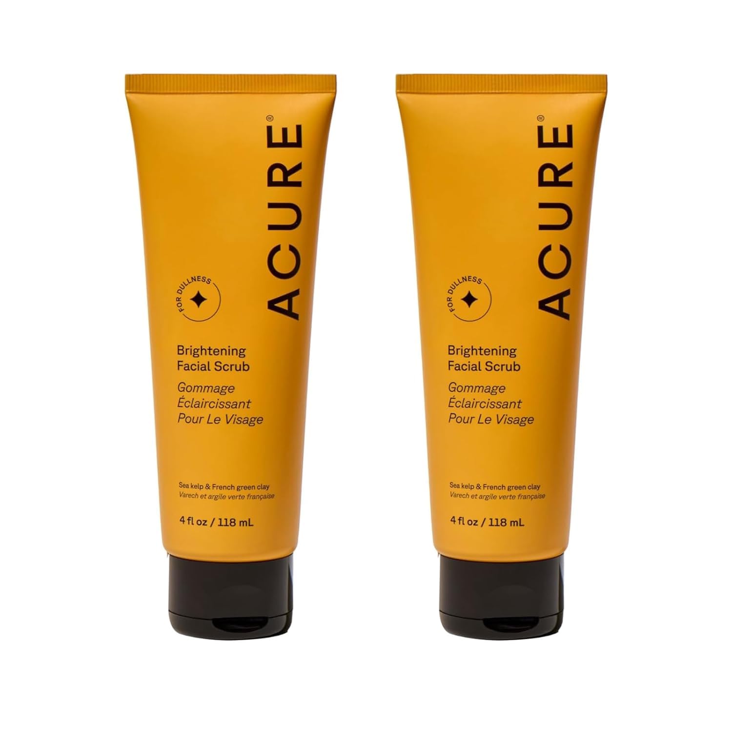 Acure Brightening Facial Scrub - Exfoliating Face Wash, Gentle Daily Scrubber & Exfoliator for Women & Men for Radiant Skin, Cleansing Wash with Sea Kelp & French Green Clay - 4 fl oz (2 Pack)
