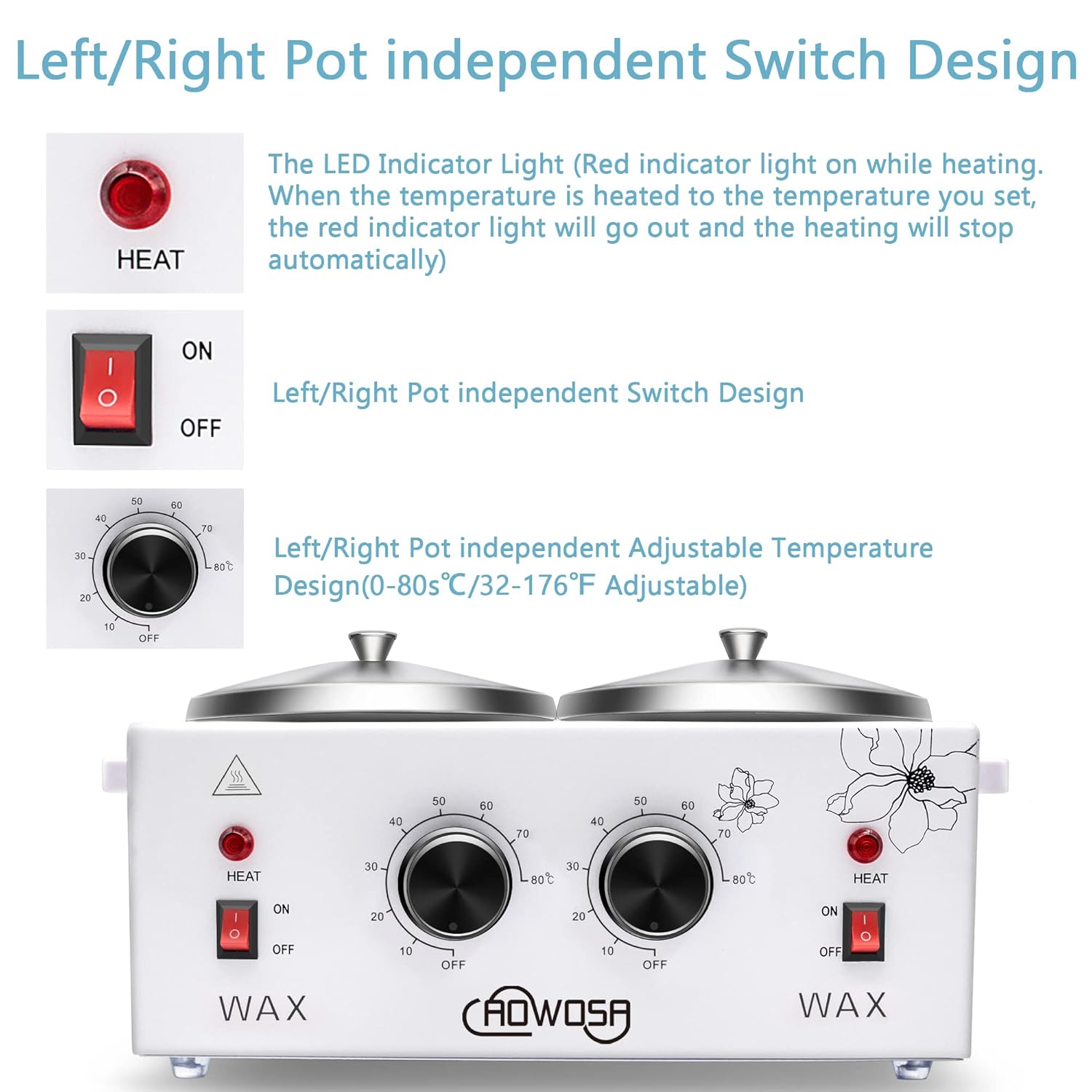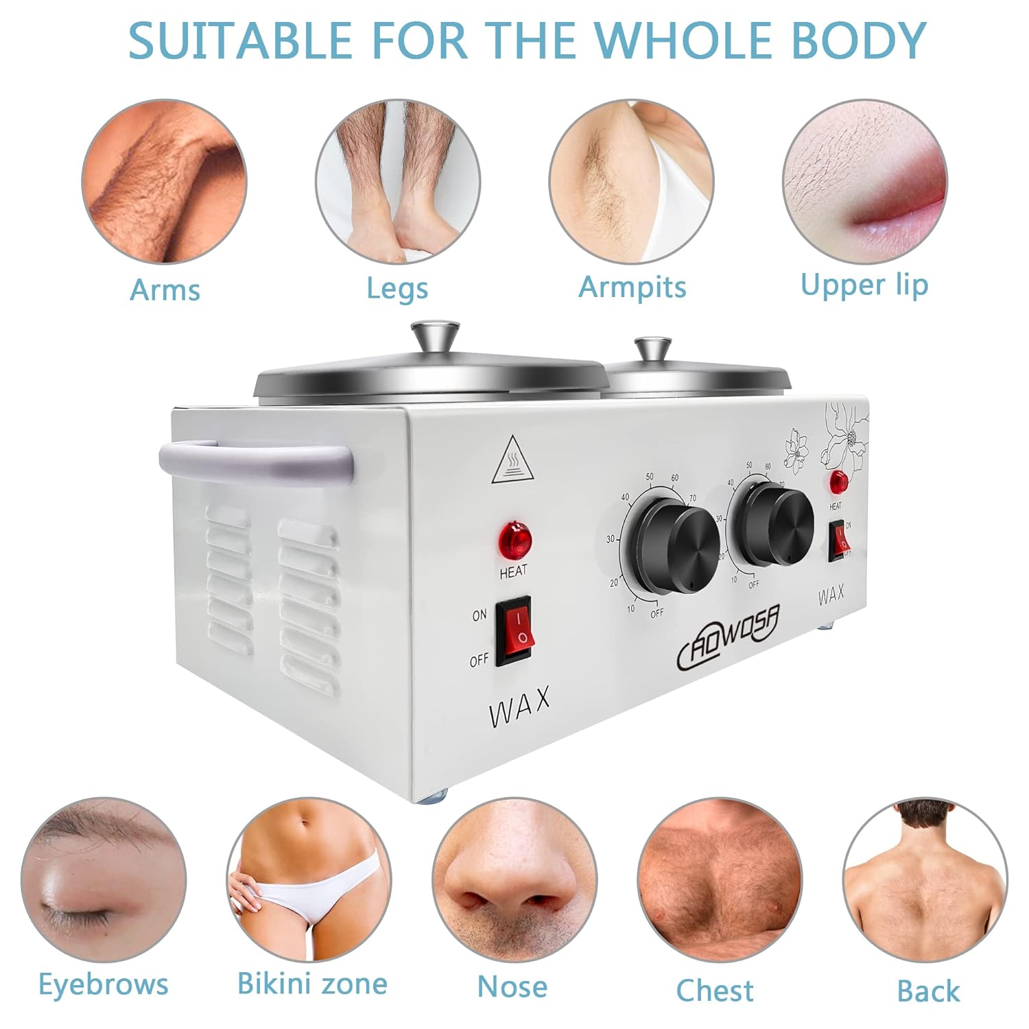 - 【Excellent Material】This professional-grade, double chamber electric wax warmer made of metal construction body and aluminum pot. Double pot wax warmers for multiple treatments or extra large waxing areas.