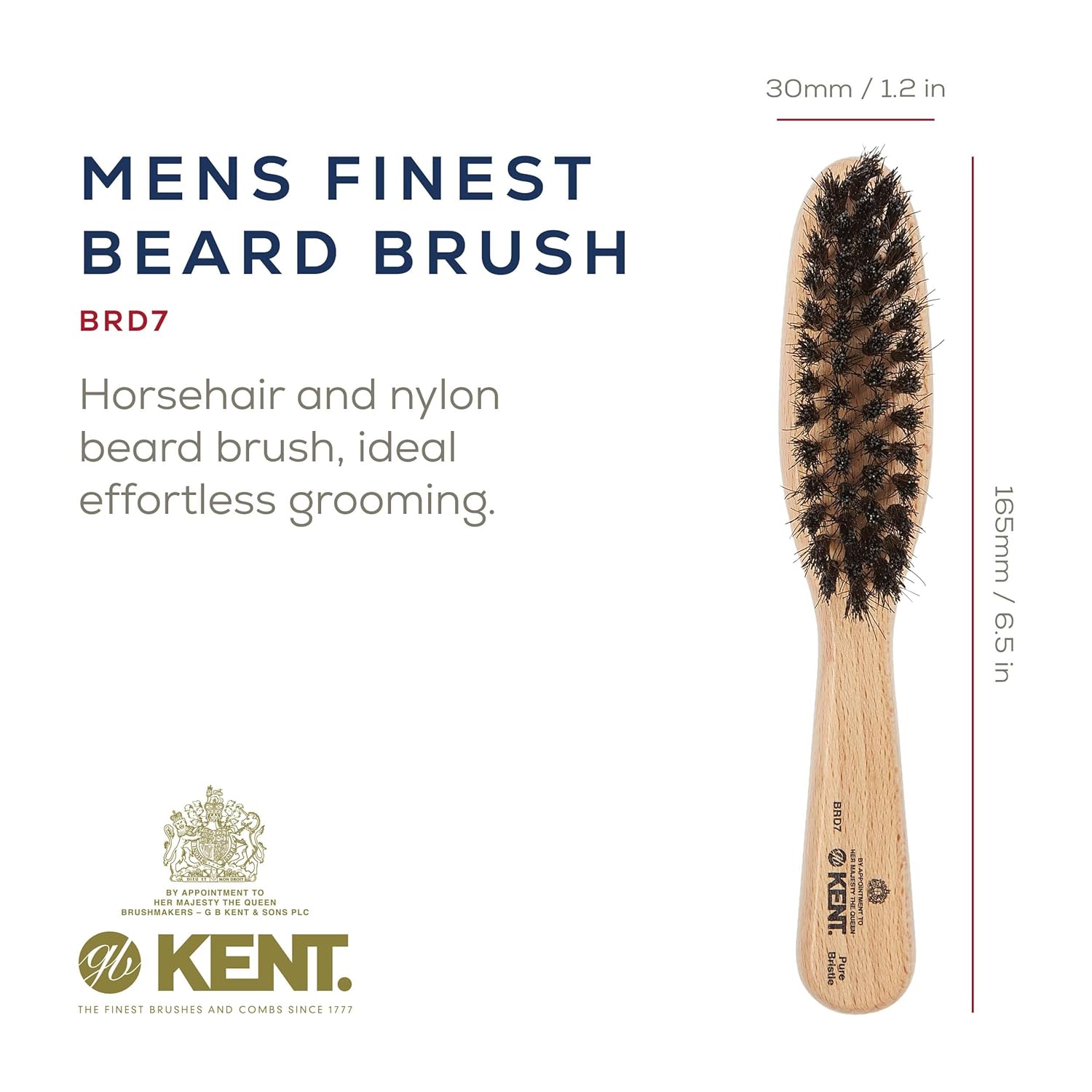 Kent BRD7 Horsehair and Nylon Blend Soft Beard Brush for Men for Flawless Shaping and Grooming, Ergonomic Grip Beechwood Handle, for Mustache and Beards, Distributes Oils and Balms. Made in England