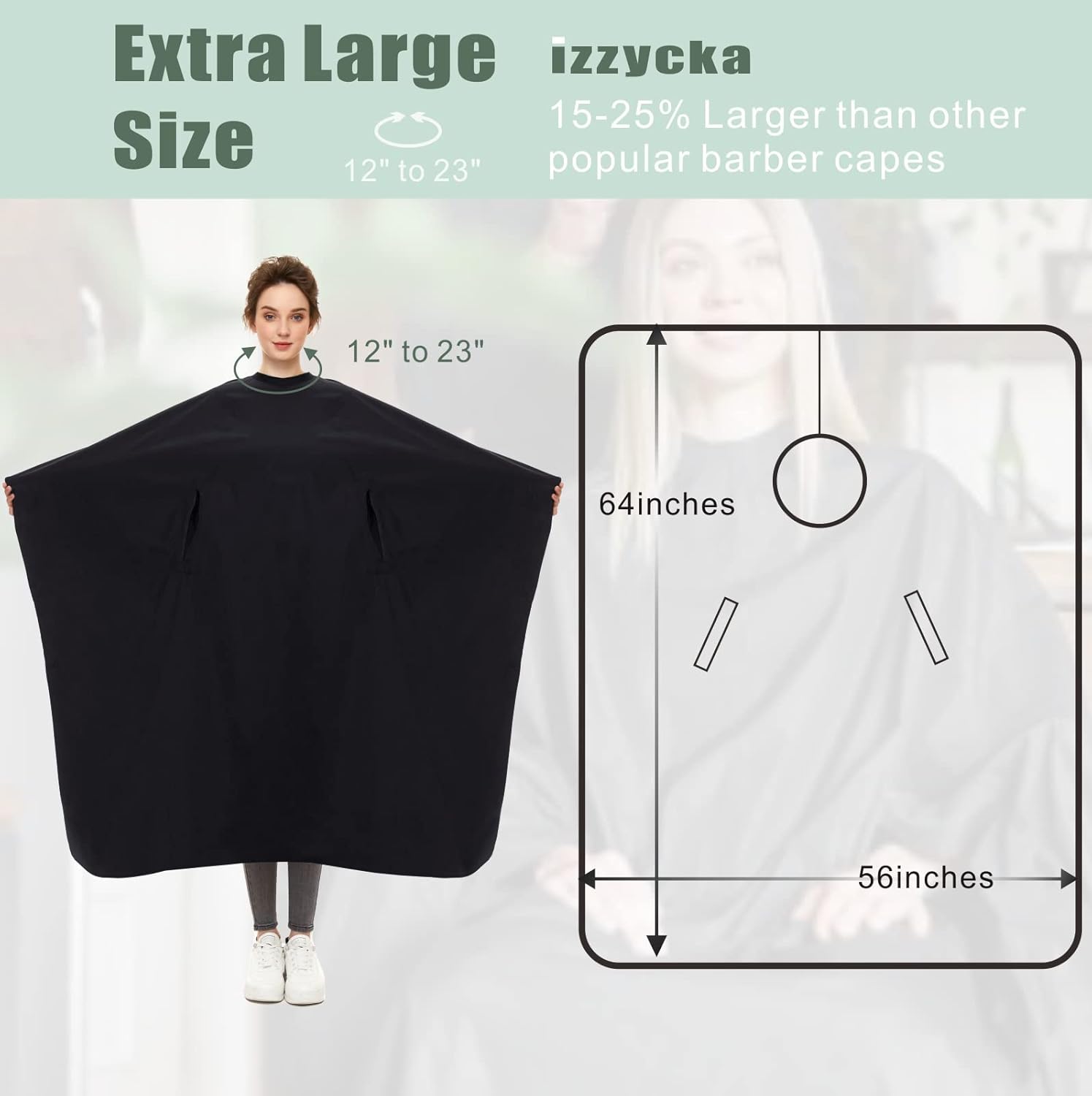 Professional Barber Cape With Armholes - Hands Free All Purpose 64"x56" Large Waterproof Salon Capes for Hair Stylist - Nylon Hair Cutting Cape For Hair Dye, Hair Color,Haircut - Black