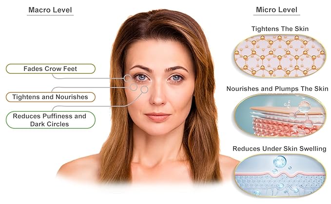 - LIFTS AND TIGHTENS THE EYE AREA – This luxurious and rich cream absorbs easily into the skin leaving your skin feeling soft, dewy, and radiant. When used regularly, this cream tightens the eye area and fights wrinkles, sagging and puffiness.