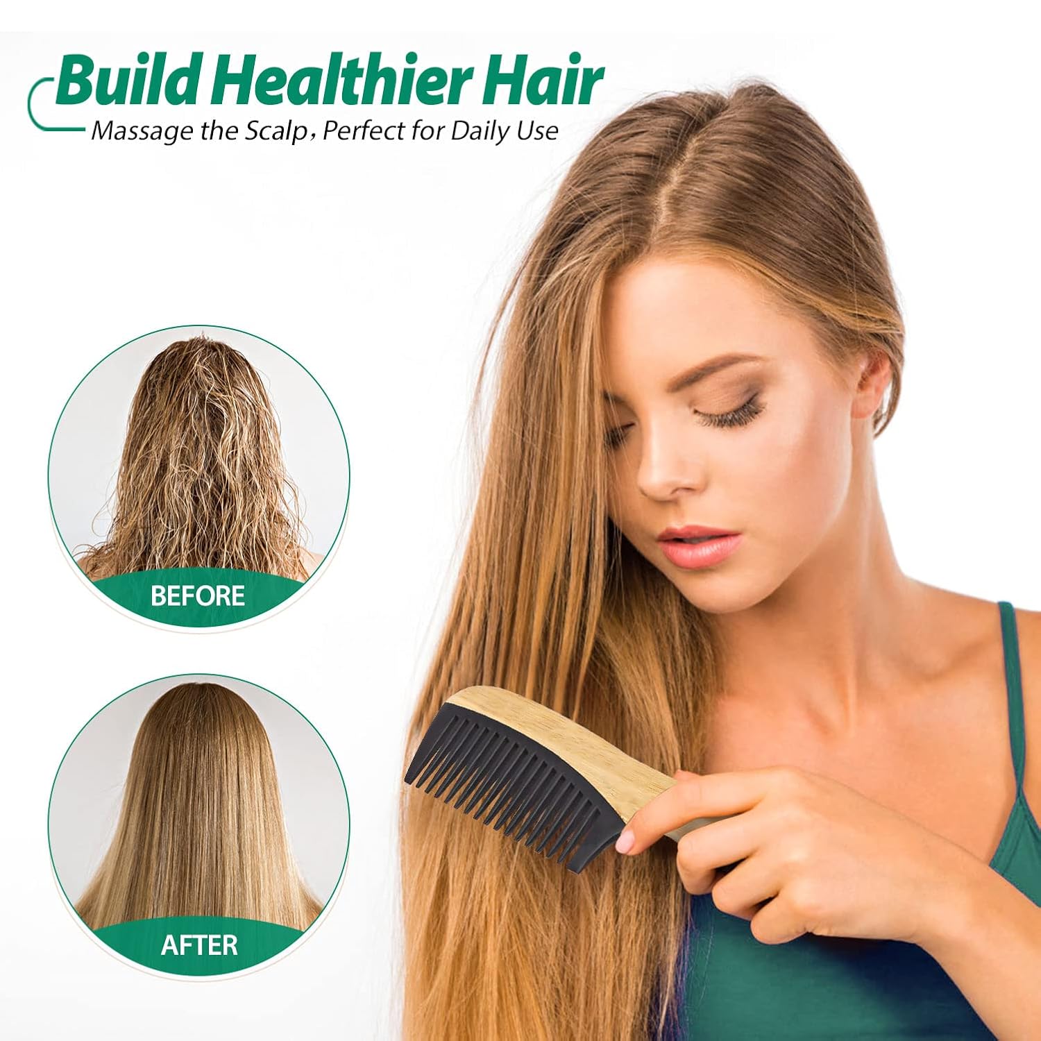 - Natural Bamboo: The combs for women and men, the material is made of natural organic bamboo. No static electricity and feels good in hand. These comb set with utilizing a unique arc grinding process, the detanglin comb comes out more rounded, smooth,ensure comb’s teeth are not very sharp,which prevents harm to the scalp and pull or break u hair