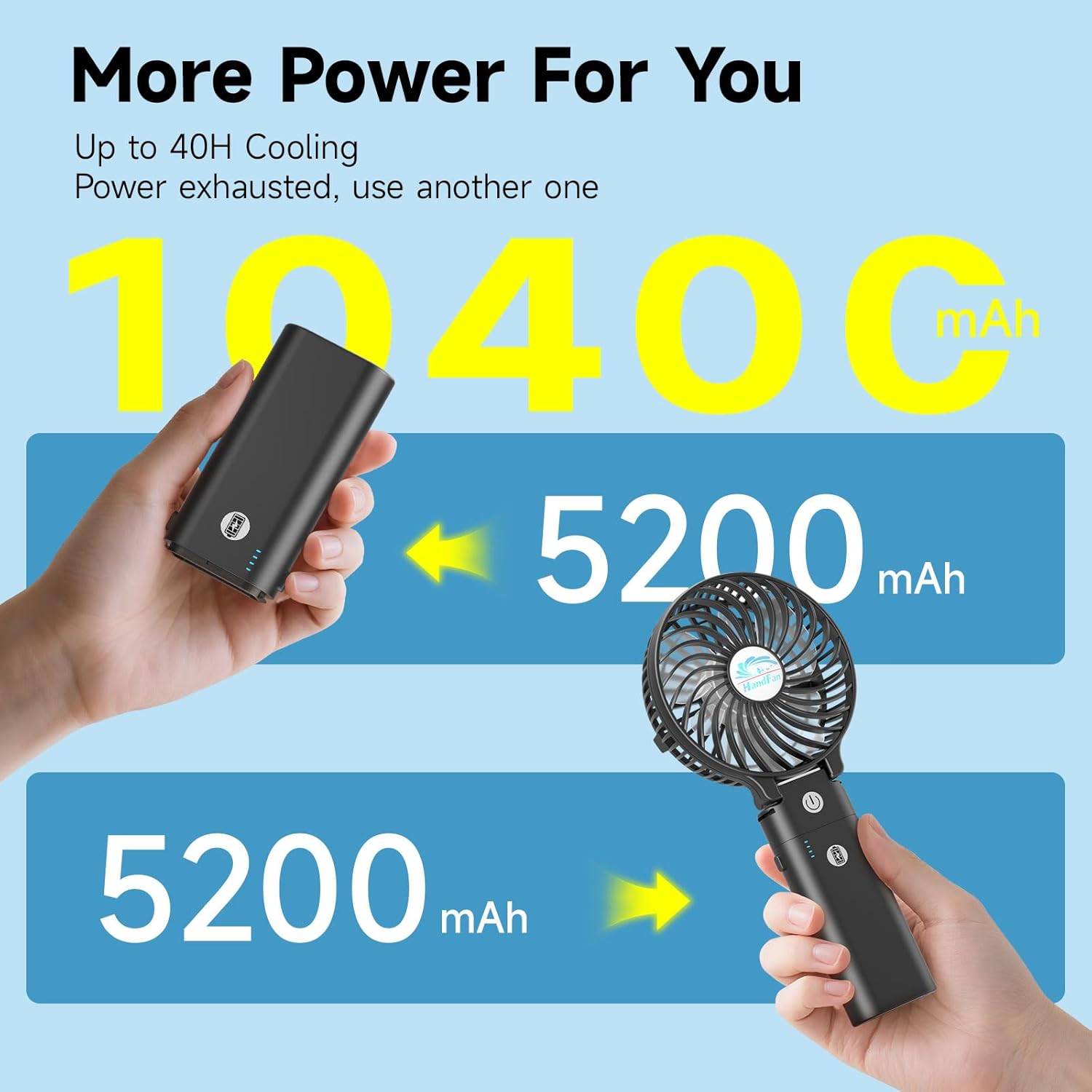 - More power for you: Come with two battery packs, up to 40Hrs cooling, power exhausted, use another one immediately, save charging waiting time (The battery can be replaced separately, extending the life of the fan)
