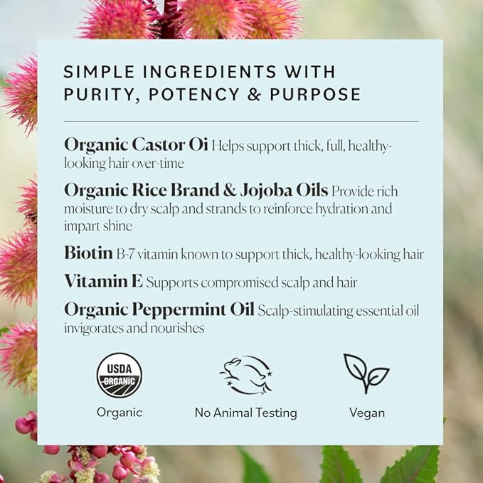 - WITH CASTOR OIL & BIOTIN: Sky Organics Organic GroPotion is formulated with conditioning castor oil, keratin-boosting biotin and a blend of scalp stimulating essential oils like rosemary and tea tree to help nourish and support fuller looking hair.