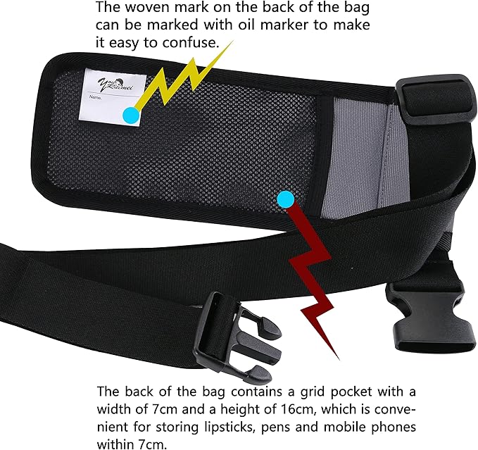 - 4. A 6.3-inch wide and 6.5-inch high zipper pocket is designed on the back of the bag, which is convenient for storing car keys, pens, lipsticks, mobile phones, and tools and materials related to small work tags. The woven logo on the back can be marked with your name and number for easy searching.