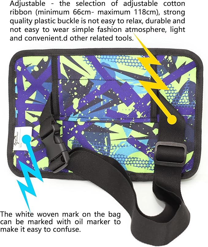 - B: On the right side of the Fanny pack, there is a zip-up bag with a width of 10cm and a height of 16cm, which is convenient for storing pens, mobile phones, lipsticks, and tools and materials related to car keys. C: The white woven mark on the bag can be marked with oil marker to make it easy to confuse.