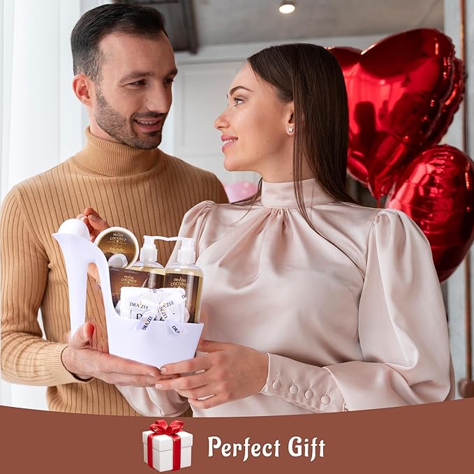 Draizee Mothers Day Gifts for Mom- Spa Gift Baskets for Women, 8 Pcs Luxury Coconut Scented Heel Shoe Design Bath and Body Spa Set, Presents for Mom, Body Care Set for Her, Self Care Package for Women
