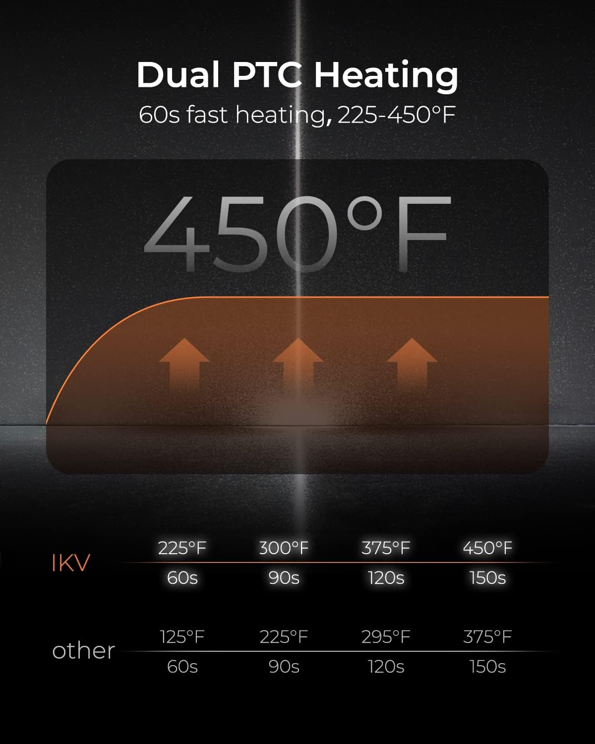 - 60S Fast Heating& 11 Heat Levels: The barrel is heated with Dual PTC, only 60s is ready for styling. The curling iron transfers heat quickly and evenly, and curled it in just a few seconds. Temperature from 225 to 450℉, all hair types can find optimal temperature.