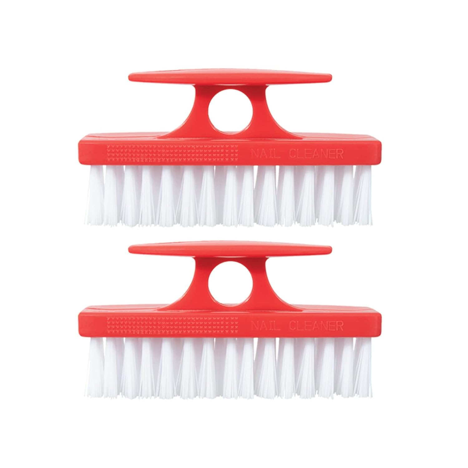 Superio Nail Brush Set (2 Pack) Cleaner with Handle - Durable Brush Scrubber to Clean Toes, Fingernails, Hand Scrubber All Surface Cleaning, Heavy Duty Scrub Brush Stiff Bristles, Easy to Hold (Red)