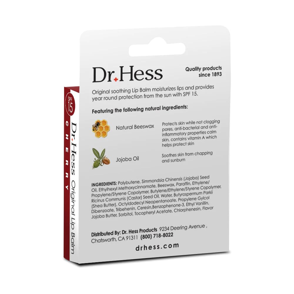 Dr. Hess Original Udder Stick SPF Lip Balm, Soothing Moisturizer Sun Screen Balm for Dry Lips with Jojoba, Beeswax & Shea Butter, Total Lip Care, Hydration & Repair, Cherry Flavor, 4 Pack