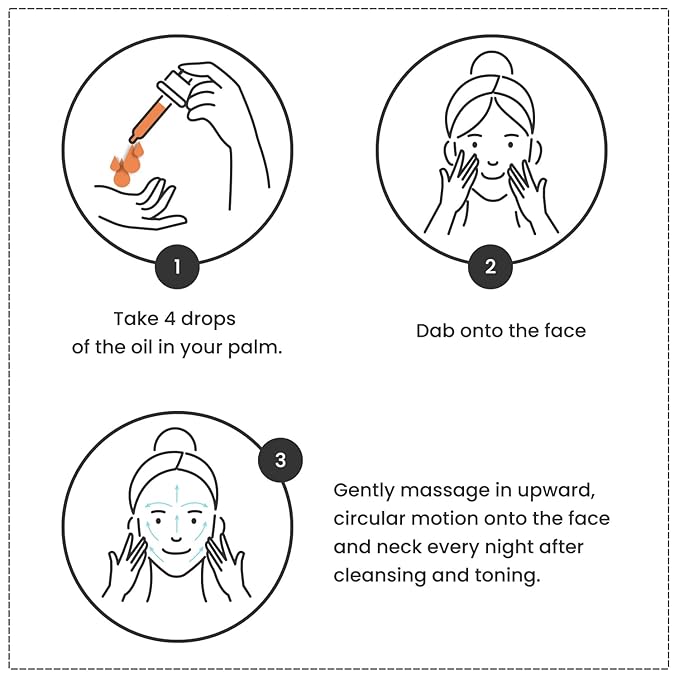 • TRADITIONAL GLOW BOOSTING POTION: Get a radiant, even toned complexion and a dewy glow with just 4 drops and 5 minutes of massage every night for a week or more. Manjish oil brings the even-toning, firming and complexion enhancing benefits of a celebrated herb - Manjistha to your nighttime skincare for a clearer appearance