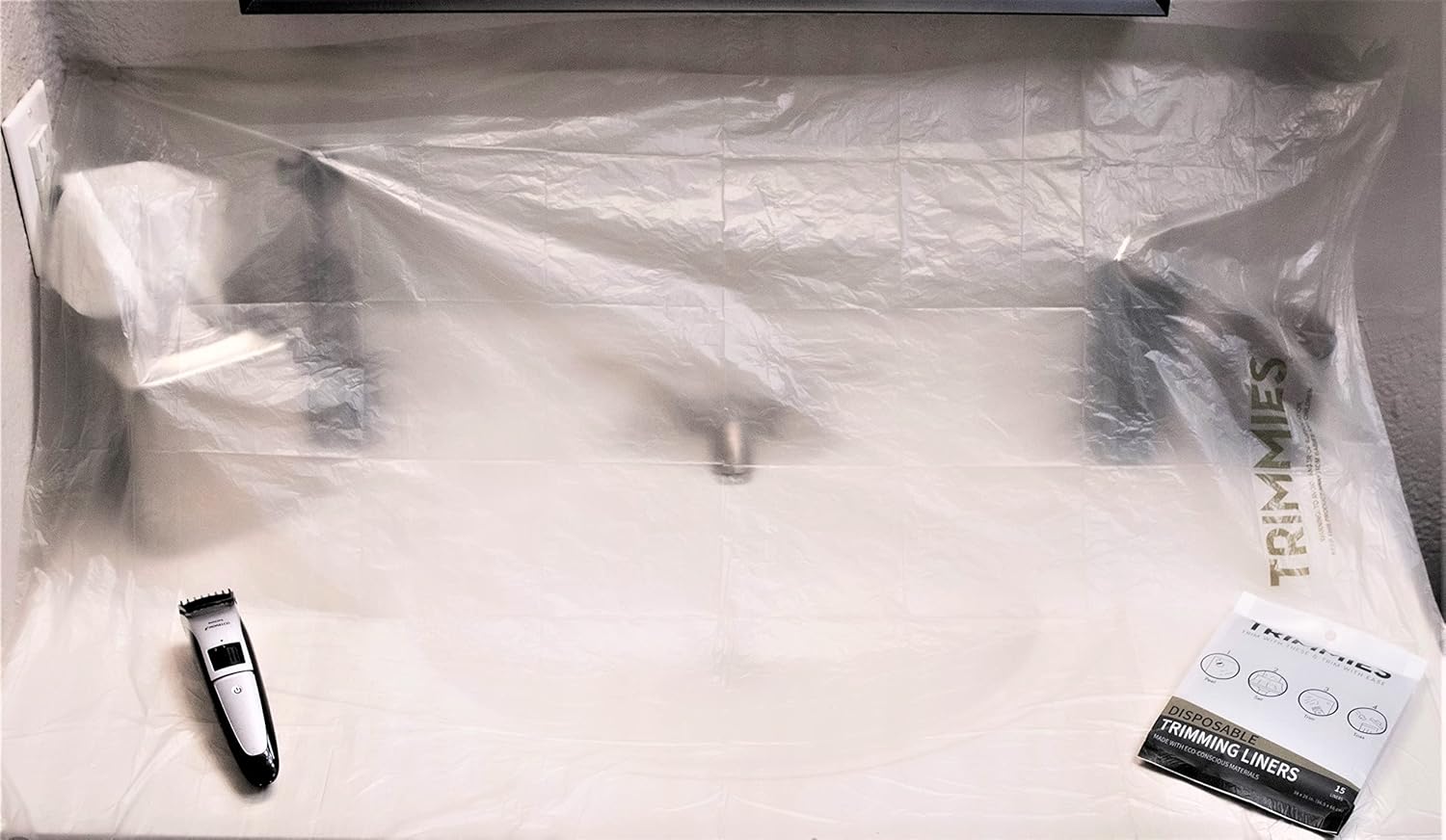 - Ditch the bibs and get Trimmies: unlike beard bibs, not only can Trimmies be used on the bathroom counter, but also on the floor for body grooming and manscaping, or for keeping a clean vanity for the ladies when applying makeup.