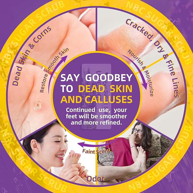 - ✅【Dead Skin Remover for Feet】 Our foot Sugar Scrub is moisturizing and rich in antioxidants to soften and nourish dry skin. It can slow down skin aging while removing unwanted toxins and dead skin cells. Wave goodbye to dry, cracked feet after just one use.