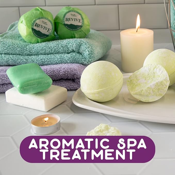 - At home spa. Indulge in a soothing Eucalyptus bath with this luxurious gift set, perfect for eucalyptus lovers. The aromatic bath bombs contain pure, natural eucalyptus essential oil for a relaxing home spa experience. Arrives in expertly crafted packaging with boutique design.