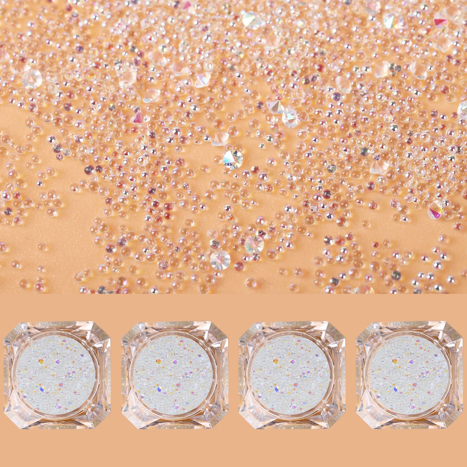 4 Bottle Micro Pixie Beads Gravel Nail Crystals Rhinestones Nail Decorations for DIY 3D Nail Art (AB Color 4pcs)