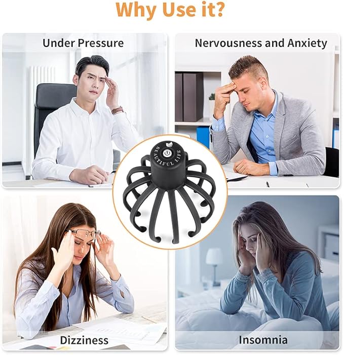- WELL-DESIGNED: The massager's shape and elastic prongs gently move across your scalp, stimulating the brain and neck for a truly invigorating experience. The gentle massage will spread a sense of calm throughout your whole body, leaving you feeling good and ready to take on the day.